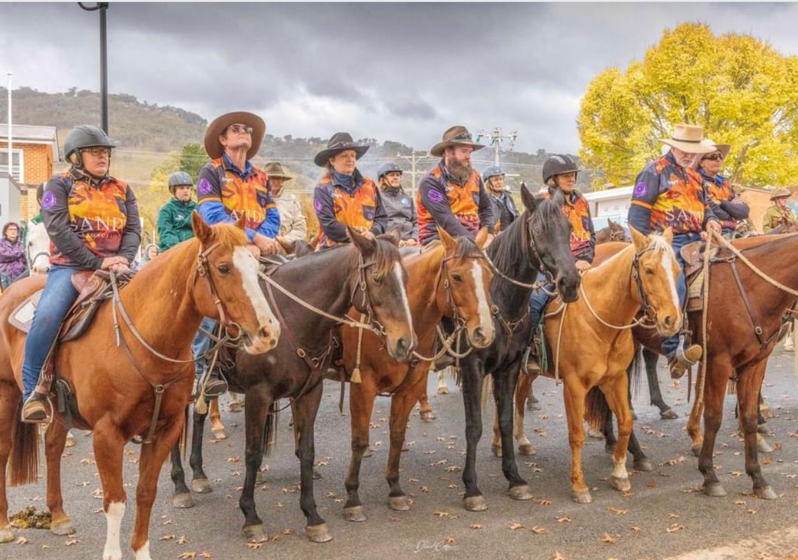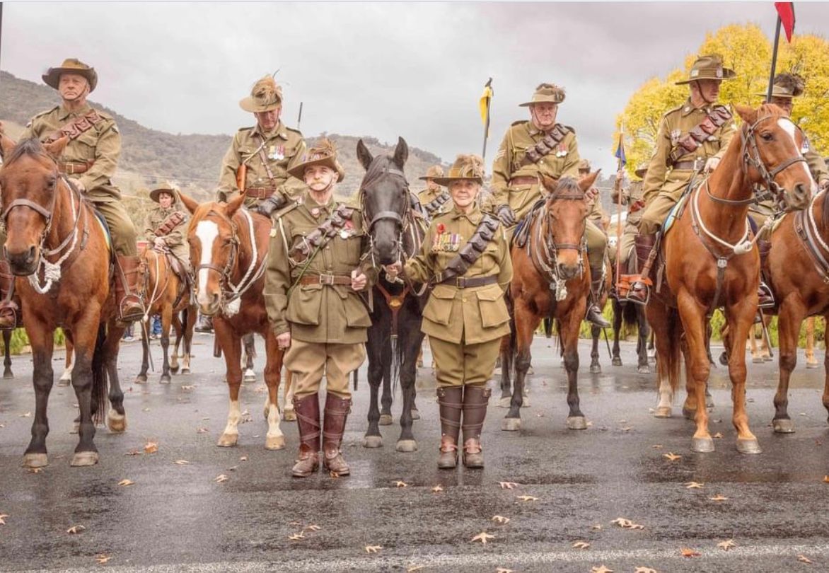 Parade and statue unveiling at Tallangatta Australian Lighthorse and other horse interest groups 200 horses on parade. Statue of Sandy the only horse of about 160,000 to return home from World War One.